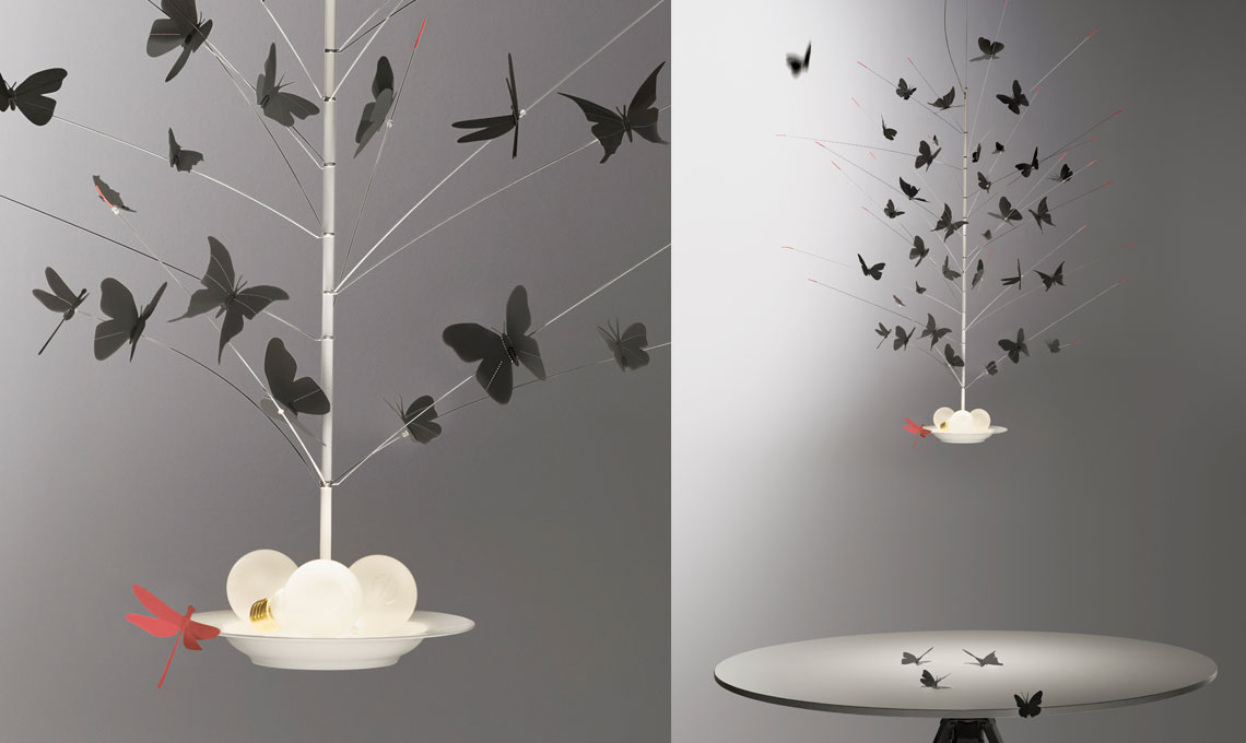 - Il bel tempo, dentro alle case, lo porta Ingo Maurer con 'La festa delle Farfalle'. Con le sue lampade Maurer ha cambiato il mondo dell’illuminazione. Per lui la sorgente luminosa è l’elemento più importante ed ogni suo gesto progettuale è una vera propria poesia. Questa sua ultima creazione emette una soffusa luce indiretta verso l’alto e una diretta verso il basso ideale per illuminare sia i volti dei commensali che il piano del tavolo.