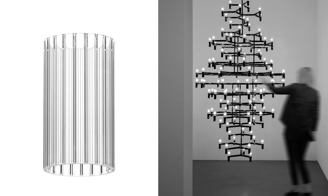 - Crown, famoso chandelier della famiglia Nemo e realizzato con una struttura modulare in alluminio pressofuso, da qualche mese è disponibile in catalogo con i bicchierini diffusori nella nuova finitura trasparente rigato conferendo alla lampada un fascino anni 50. Sono i dettagli a fare la differenza!