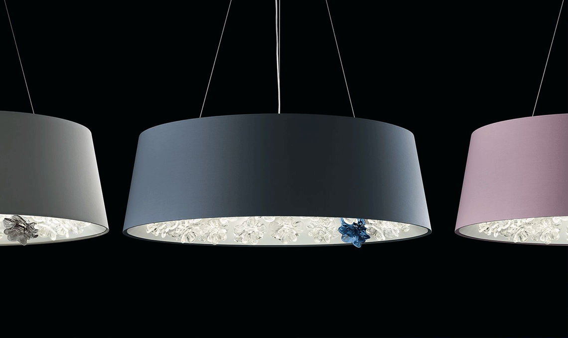 Con New Eden, Daniela Puppa e Francesca Martelli, con grande sensibilità trasformano il lampadario tradizionale veneziano in un corpo chiuso preservando e valorizzando una delle decorazioni storiche più famose: il fiore in vetro lavorato 'a mano volante'. Il risultato è un firmamento di fiori in vetro trasparente che prende vita grazie ad un LED da 1,5 watt molto luminoso (uno per ogni fiore). Un unico fiore colorato, che resta fuori dal coro, è posizionabile a piacimento, rendendo la lampada ancora più speciale. Una seconda sorgente a LED, sempre integrata, si trova all’interno del paralume ed è rivolta verso l’alto aggiungendo un’illuminazione indiretta diffusa nell’ambiente circostante.
