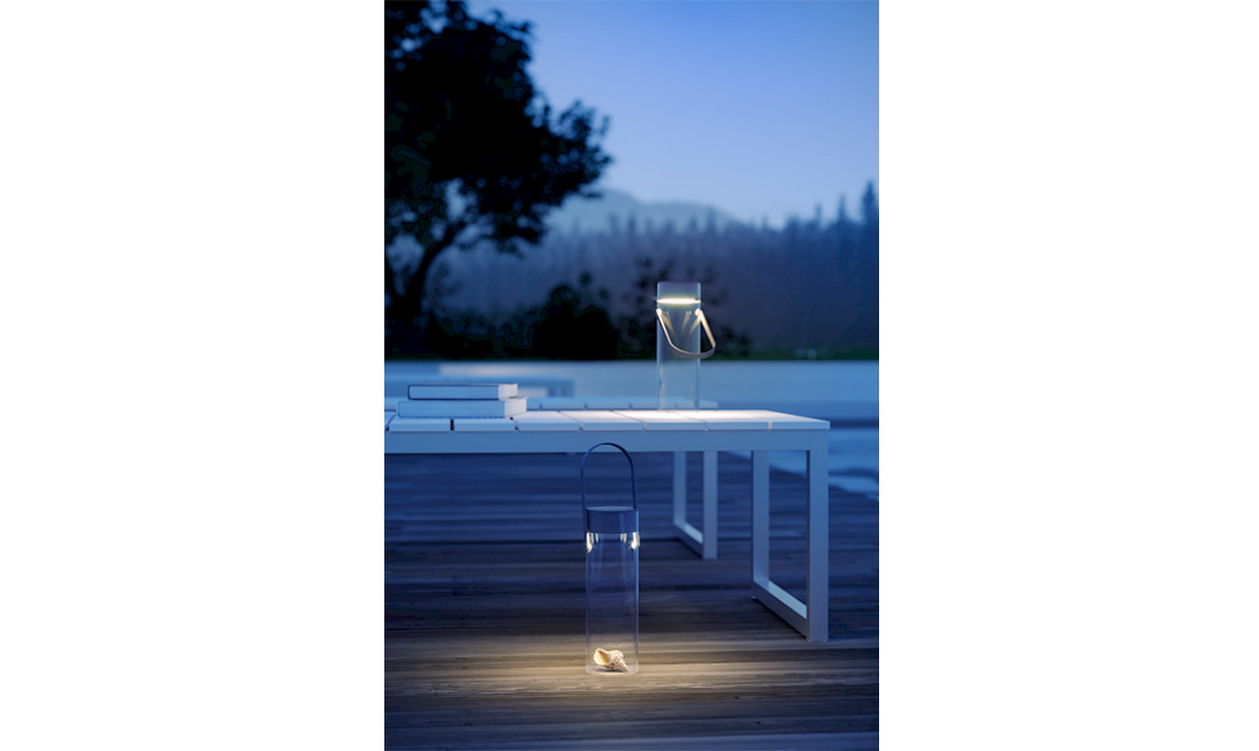 Chiardiluna, prodotta da Rotaliana e disegnata da Dante Donegani e Giovanni Lauda, è infatti ricaricabile wireless e provvista di manico, oltre che certificata IP 44. La lampada è in vetro trasparente e dotata di Led integrati ad alta efficienza, emette una piacevole luce verso il basso che illumina il piano su cui poggia.