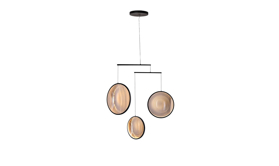Ruotando la doppia sorgente luminosa e modificando la posizione di uno dei cerchi, puoi cambiare lo scenario luminoso. Elara, con sfera a doppia emissione, illumina un’intera stanza [Lodes]