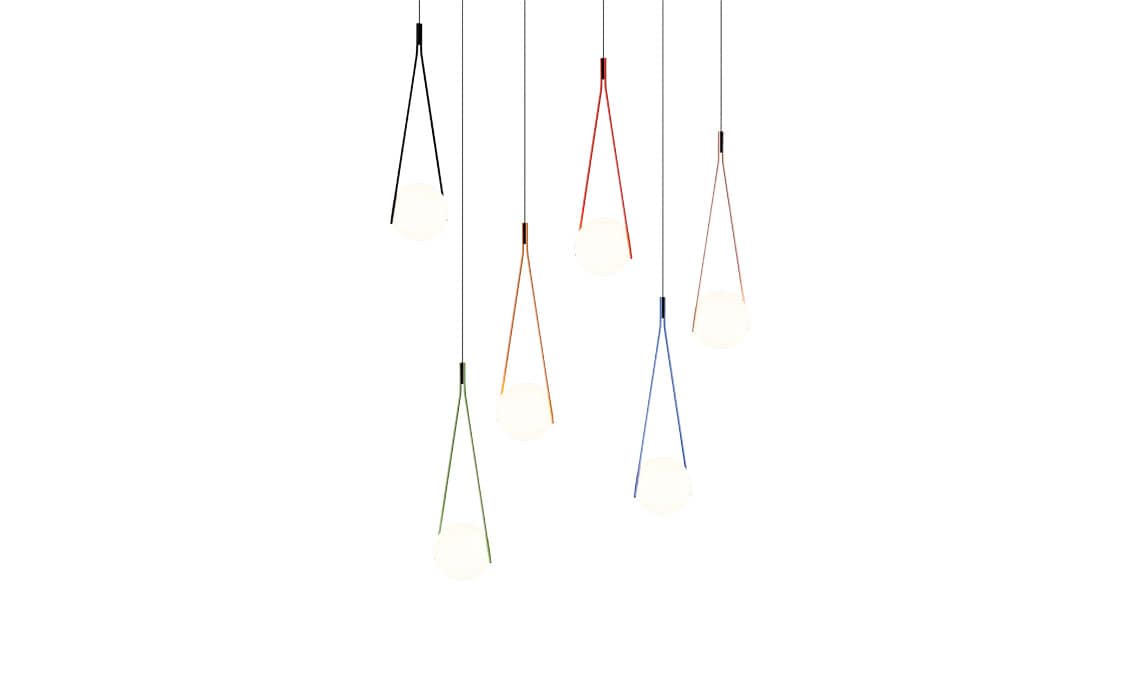 Una sfera di vetro opalino sorretta da una leggera struttura che ricorda le bacchette cinesi. NomNom Light, in varie colorazioni, è ideale per creare composizioni di più elementi [Moooi]