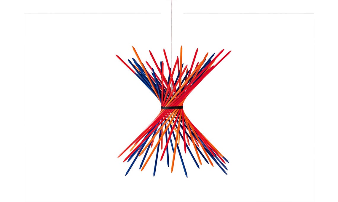 Ricorda il gioco del Mikado. È composta da 50 ‘bastoncini’ in legno che puoi disporre come vuoi, per dare vita a effetti di luce sempre diversi. Pic-a-stic è composta da un set di 50 aste di legno laccato tenute insieme da un anello di gomma. Disponibile in versione colorata o con bastoncini bianchi e neri e due bastoncini rossi [Ingo Maurer]