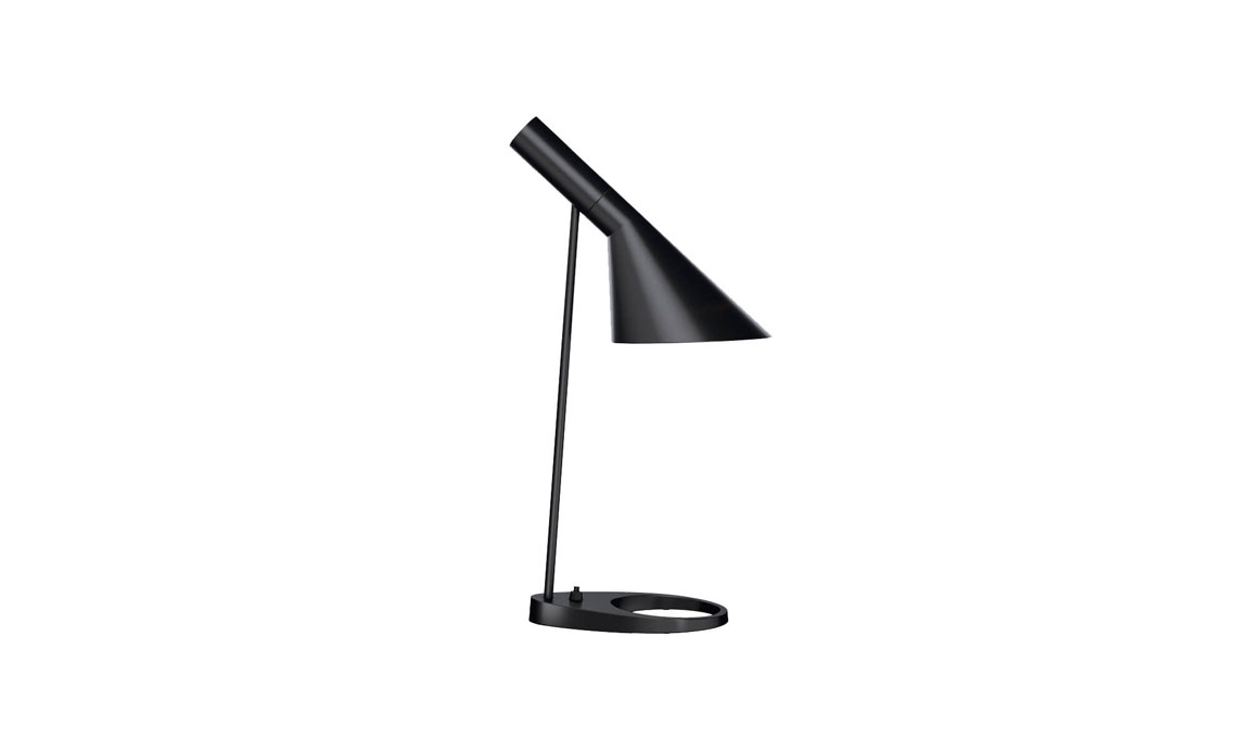 Designer: Arne Jacobsen Produttore: Poulsen Anno di progettazione: 1960 La lampada da tavolo AJ è stata disegnata dall'architetto e designer danese Arne Jacobsen per il SAS Royal Hotel di Copenhagen dove ha progettato tutto, dall'architettura al singolo pezzo d'arredo. Ne esiste anche una versione da terra da cui si differenzia per un paralume più grande per l'illuminazione diversa che deve dare sul tavolo. In origine lo spazio nella base era pensato per ospitare il posacenere, oggi rimane solo una cifra stilistica.
