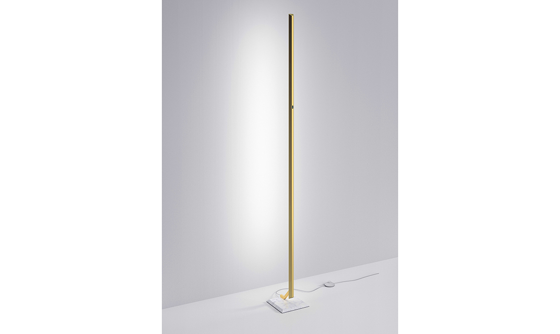 Preziosa. Un lingotto d’oro, che contiene la luce, e una base in marmo. LineaVolo, dimmer controllabile con sensore Touch-Dim [Formalighting, cm 2x2x185h - 29,4W - 2.700/4.000K, dimmerabile, da