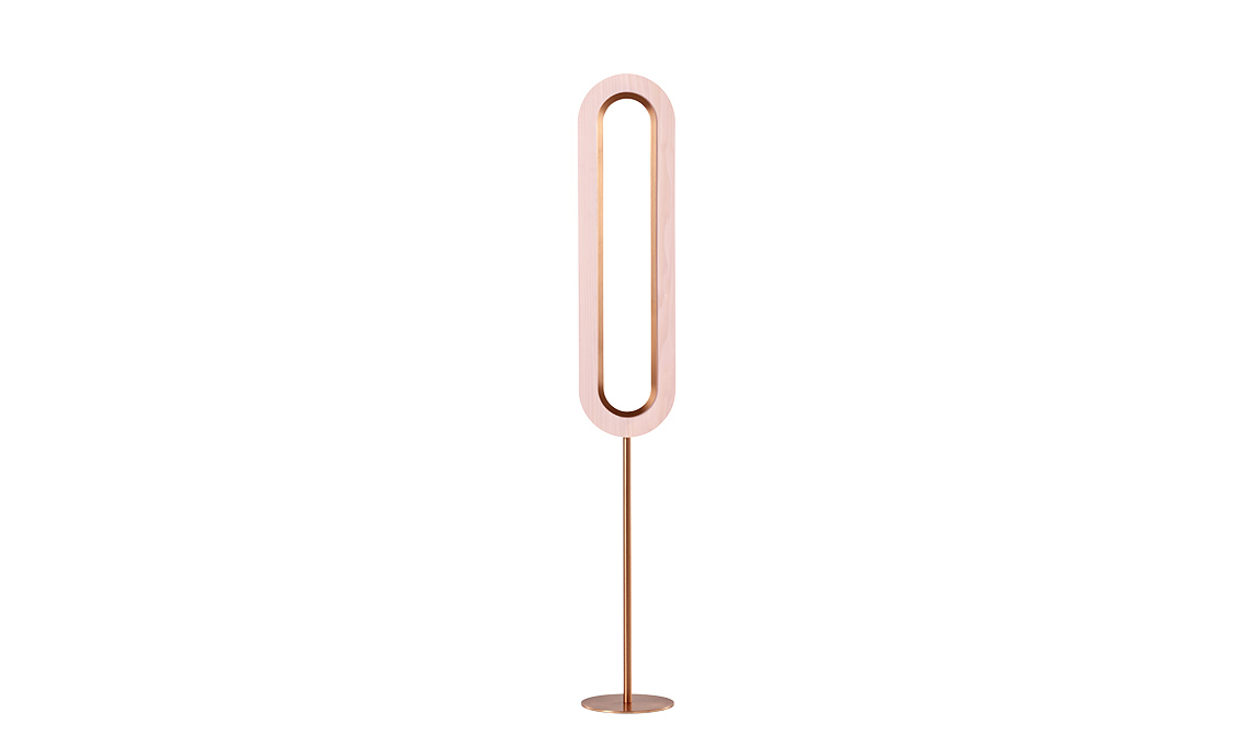 è formata da una lente a Led opaca su base metallica, circondata da due ellissi: una in legno che diffonde la luce, una metallica che fadapresa [Lzf,