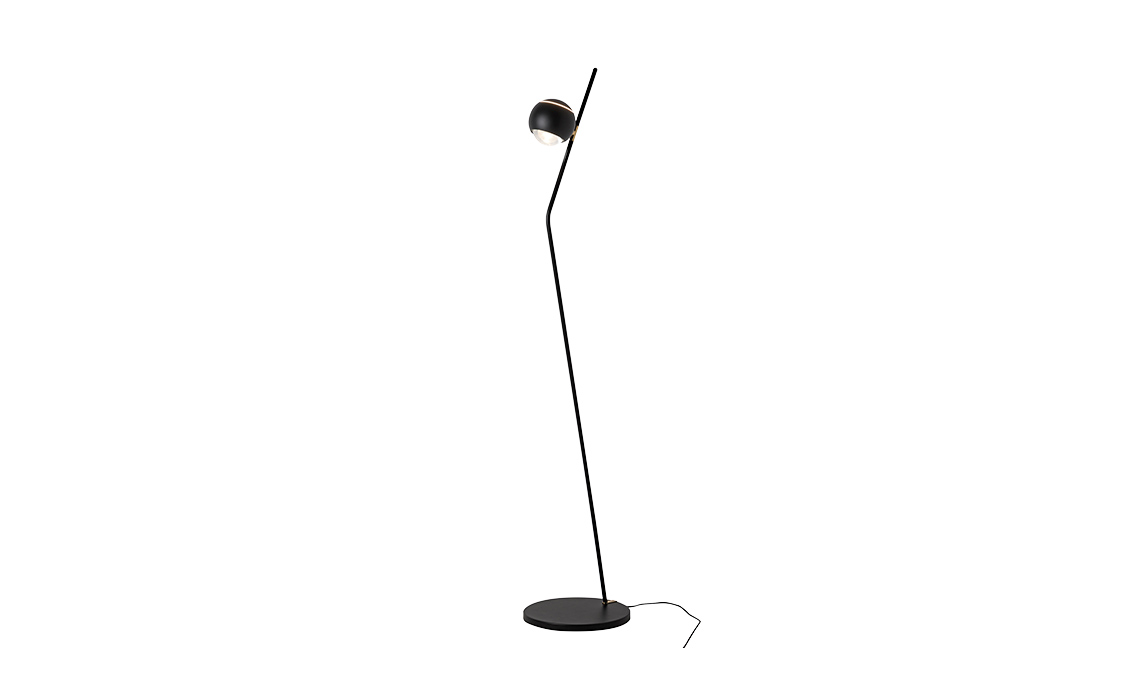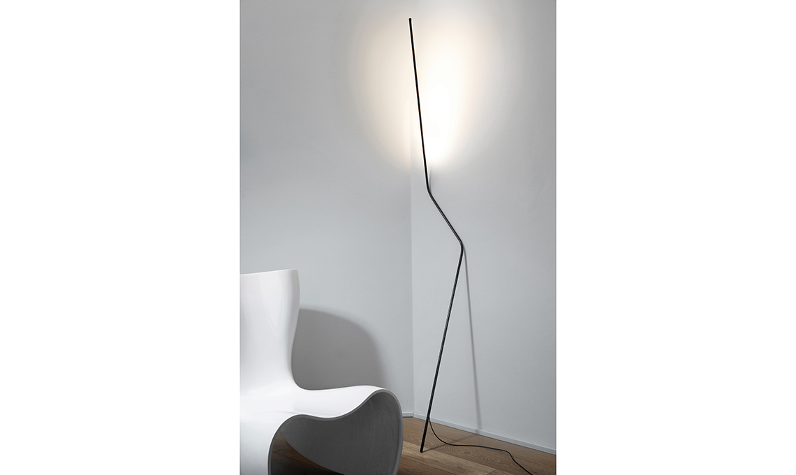 ‘Da appoggio’. Struttura in acciaio curvato e corpo illuminante in alluminio verniciati nero opaco per Neo [Nemo Lighting, cm 24x33x 205h, con Linear Led dimmerabile 8,5W - 2.700K €585,60].