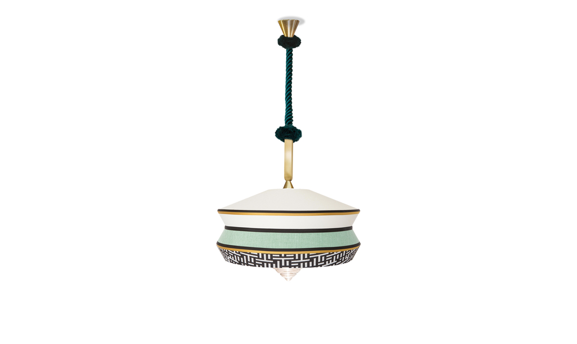 Babu ha un paralume scenografico, realizzato con la tecnologia della stampa digitale tridimensionale su tessuti per esterni [Contardi Lighting]