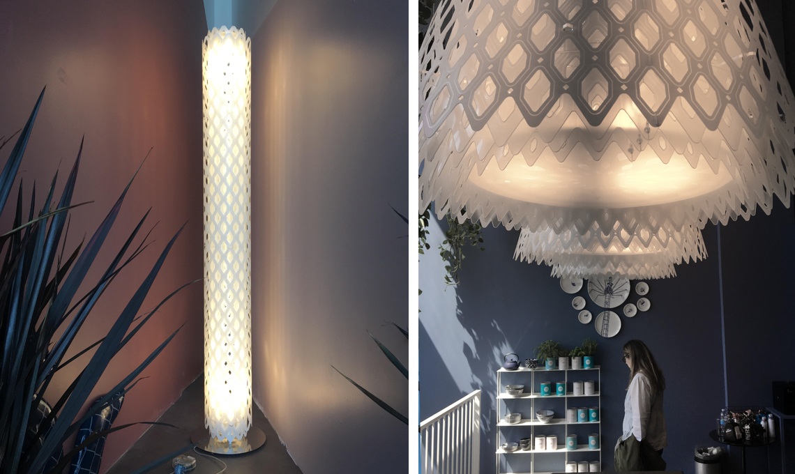 Quelli che utilizzano sono leggerissimi fogli plastici tutti brevettati, nobili e soprattuto infrangibili. In ogni lampada c’è una reale componente artigianale italiana, il saper fare, che permette di realizzare oggetti luminosi difficilmente imitabili.