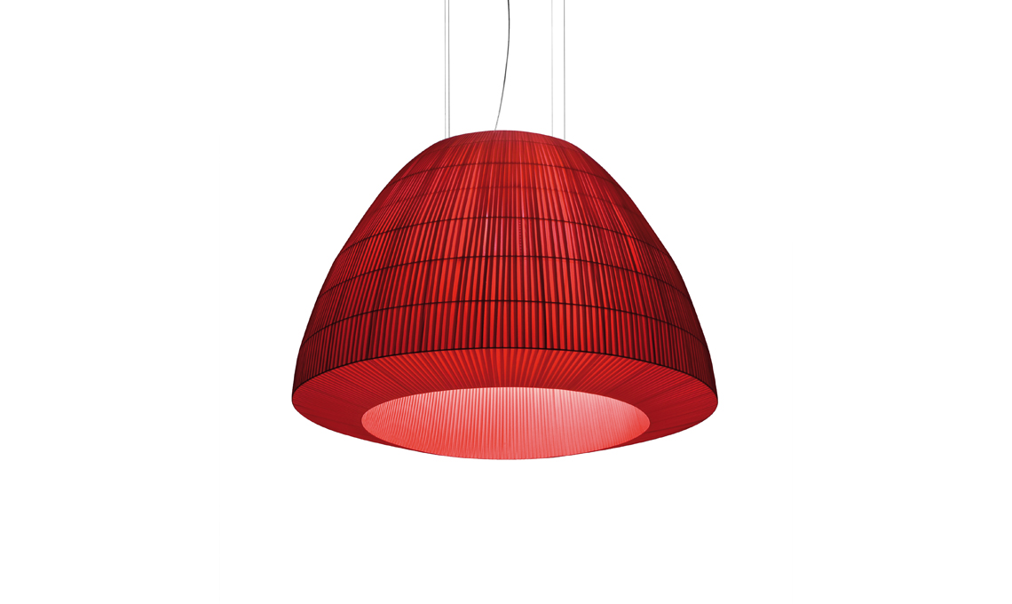 • Smithfield, design Jasper Morrison, con corpo in alluminio e calotta rosso lucido [Flos]