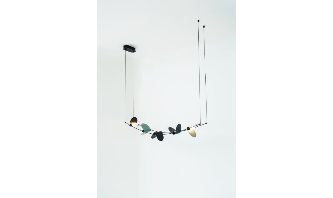 Un sistema di illuminazione sospeso, dalla struttura leggera, minimale ma anche decorativo e con un’attenzione particolare alla luce emessa... È Ali di Luce, disegnato da Giulia Liverani per OliveLab: puoi scegliere tra due tipi di sorgente – una a luce diffusa e l’altra a luce direzionabile, che ruota di 360°e si muove lungo le barre metalliche – e 9 tipologie di struttura.