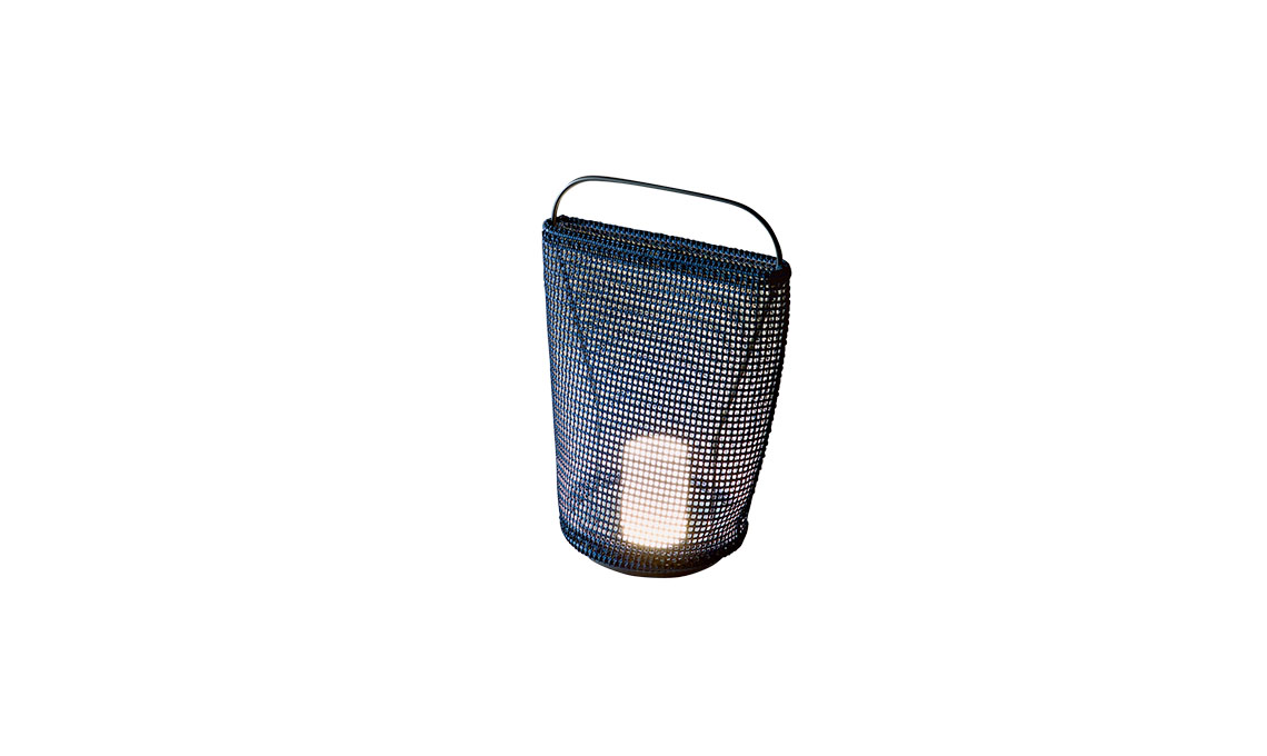 Lanterna di Paola Lenti ha una batteria ricaricabile con autonomia di 6 ore. La versione a sospensione è provvista di un nastro in corda Rope, per appenderla.