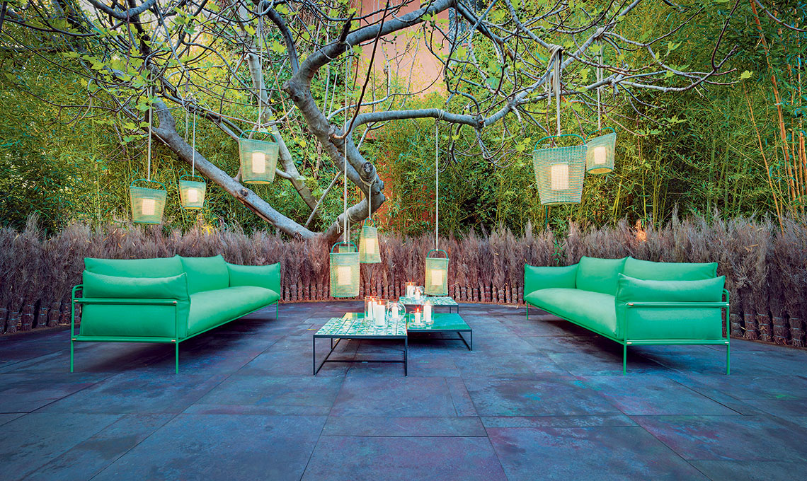 Il risultato? Una lampada da esterno affascinante e durevole nel tempo, realizzata con filati di alta qualità e hi-tech. La larga trama del tessuto Kimia, particolarmente resistente agli agenti atmosferici e all’acqua di mare e piscina, filtra e diffonde piacevolmente la luce calda (e regolabile di intensità) del corpo illuminante indipendente, integrandosi in ogni contesto outdoor.