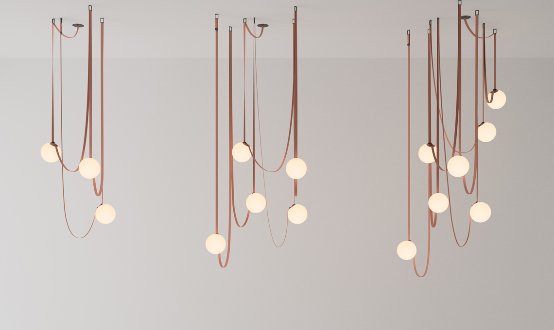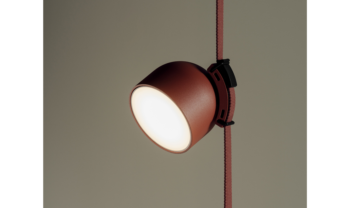 Disegnato da Diez Office, lo studio del designer Stefan Diez, per Vibia, Plusminus è composto da una cinta in tessuto che conduce elettricità e permette di fissare liberamente più lampade che formano la collezione, dotate di una funzionale e connotante fibbia.