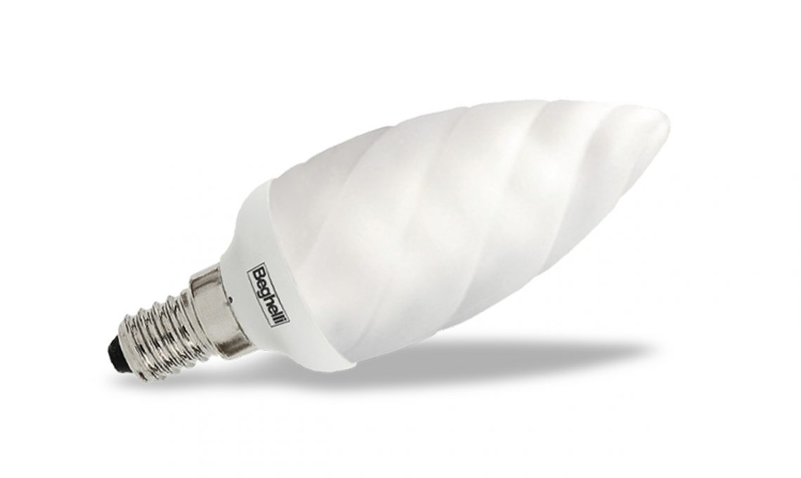 Potenza di 11 watt, vita media di 10.000 ore e risparmi dell’80% per la lampadina fluorescente Compact Tortiglione, che ricorda i classici modelli a fiamma attorcigliata nei lampadari del passato [Beghelli, prezzo da rivenditore].
