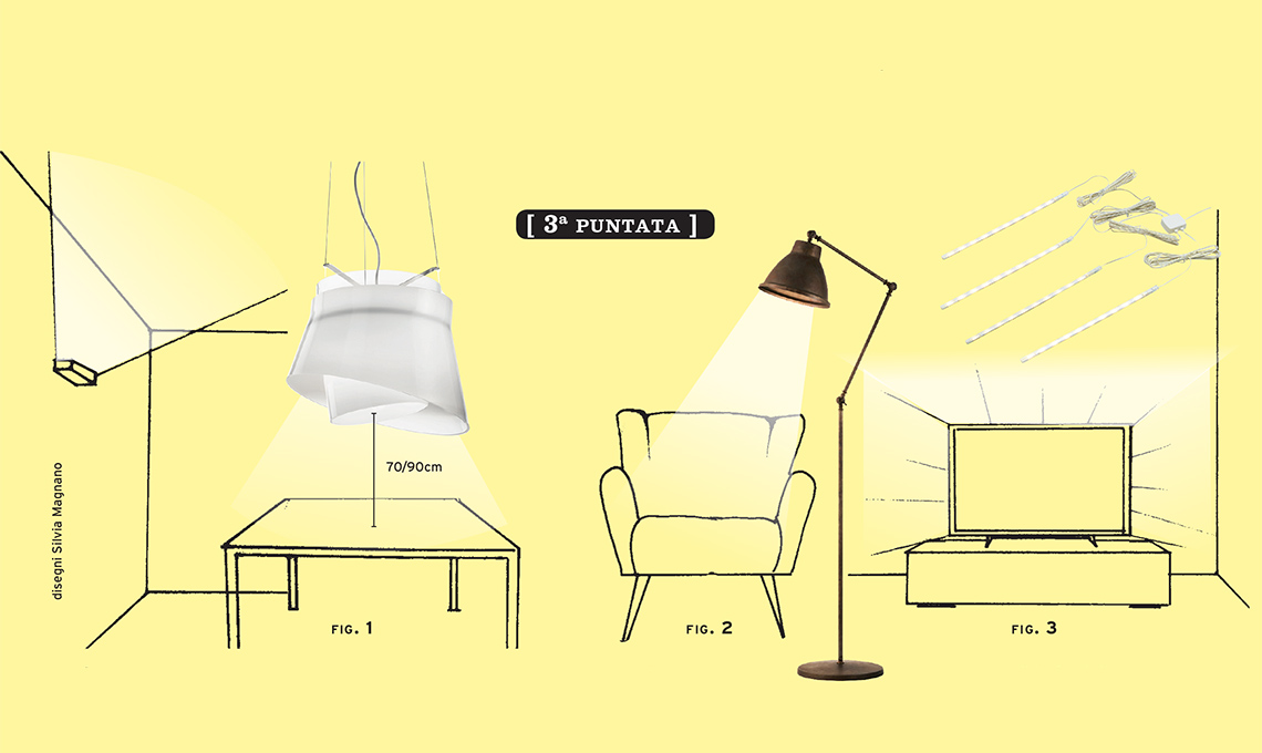Qui è invece preferibile una luce diretta che vada ad illuminare bene ciò che si ha davanti, senza però abbagliare i commensali. L’ideale è la luce da poker. Quando si mangia è terribile essere abbagliati o al contrario non vedere gli altri. L’altezza ideale va da 70 a 90 cm dal piano del tavolo. E funziona anche in caso lo si usi per lavorare o studiare.