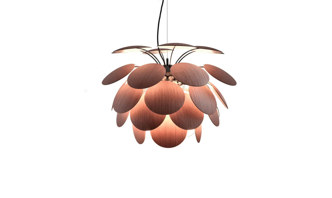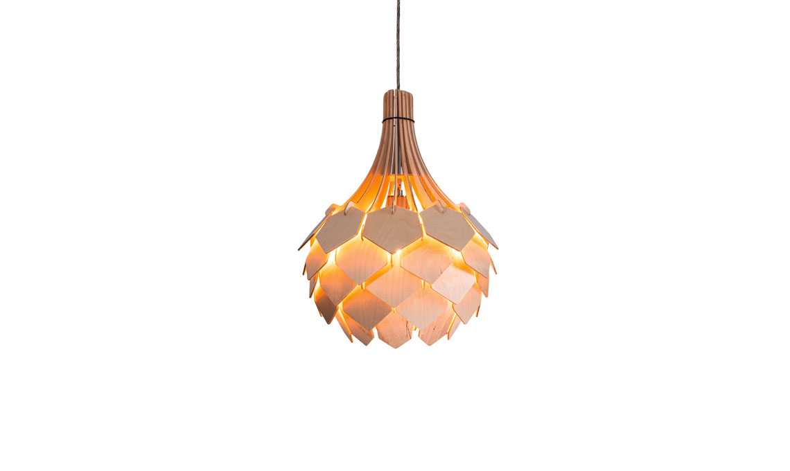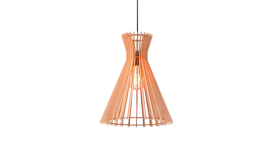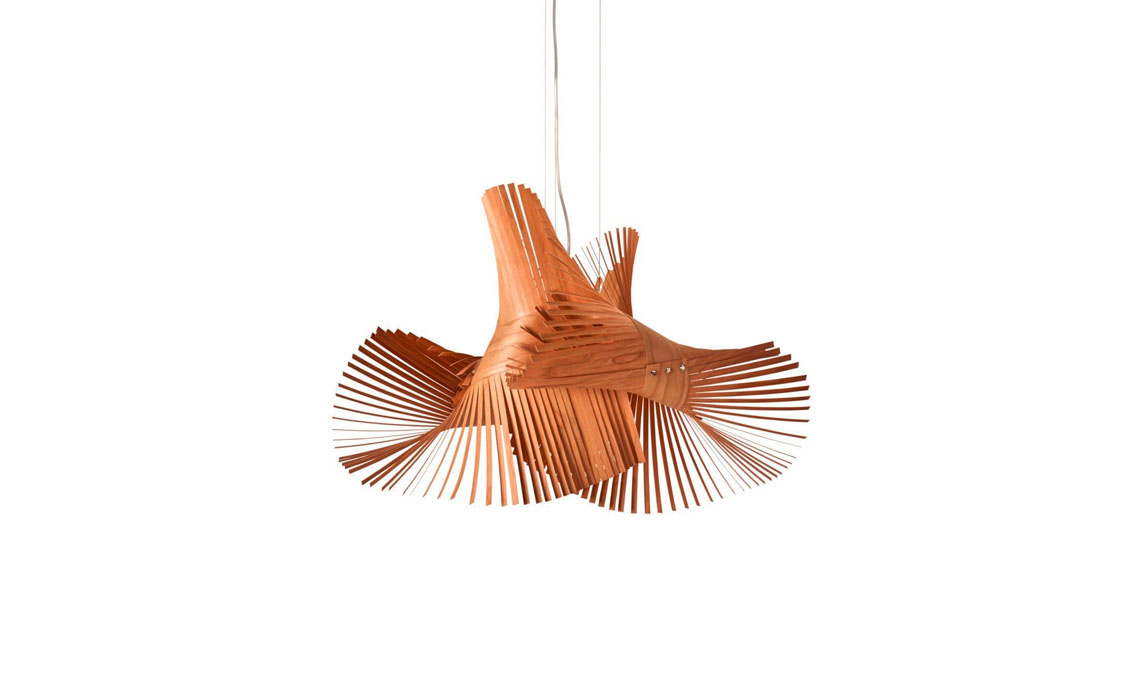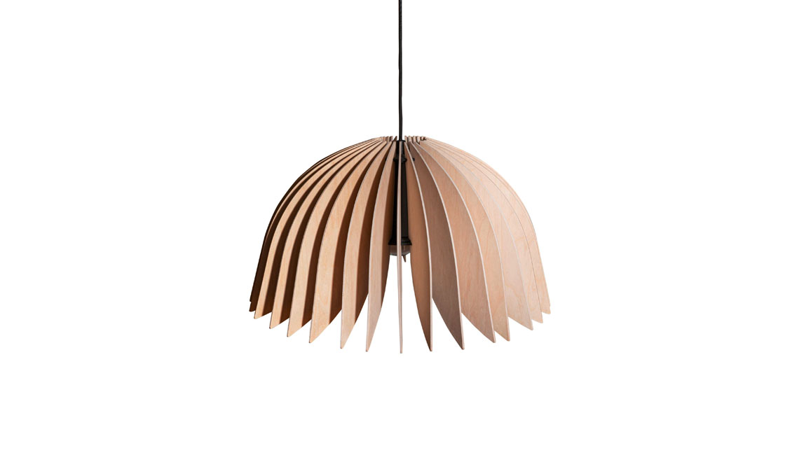 Sono tutte rigorosamente realizzate in legno naturale e fatte di elementi – fasce, listelli, prismi e coni – che si intrecciano tra loro e si sovrappongono, al servizio di un modo alternativo di illuminare che crea luci e ombre sulle superfici.