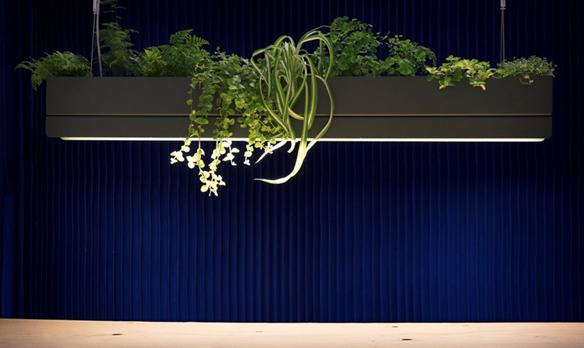 Questo trend ha sedotto anche il settore dell’illuminazione di interni e ne sono nati progetti interessanti dove luce artificiale e elemento verde si valorizzano vicendevolmente.