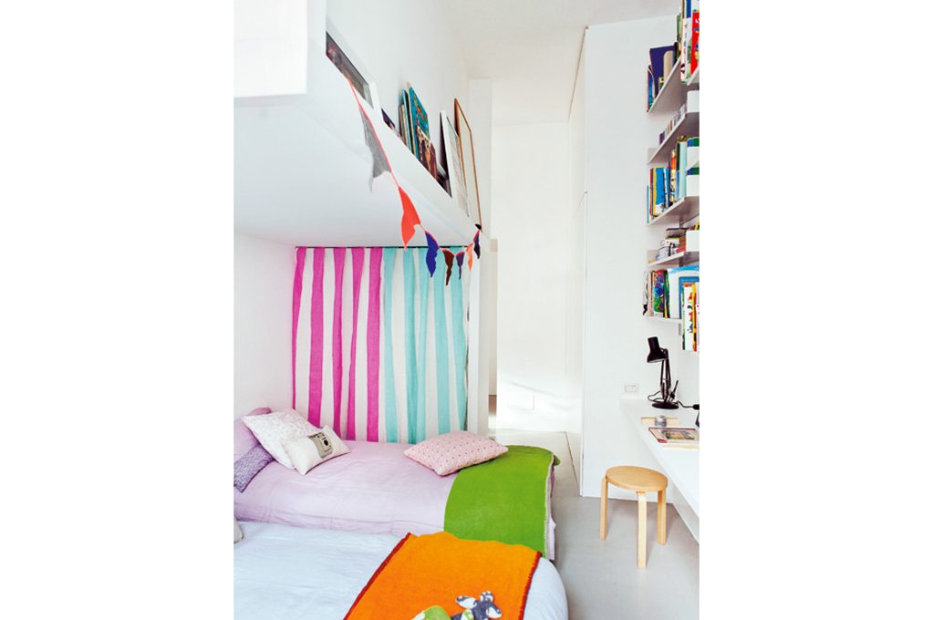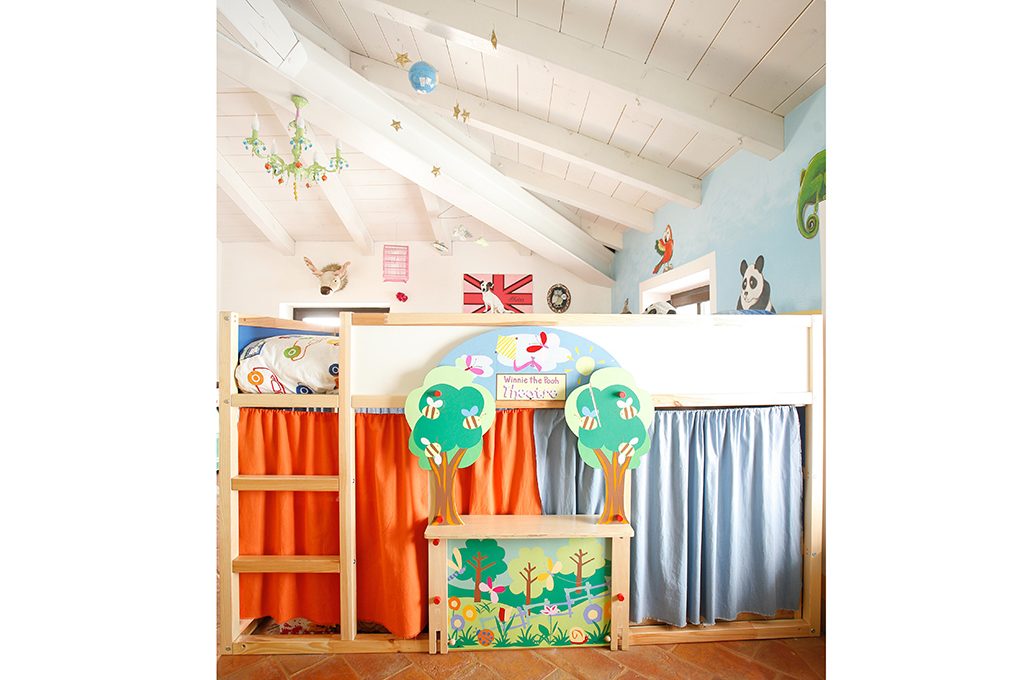 Nelle camerette dei bambini la tenda è perfetta: può nascondere un armadio per i vestiti o una nicchia per i giochi