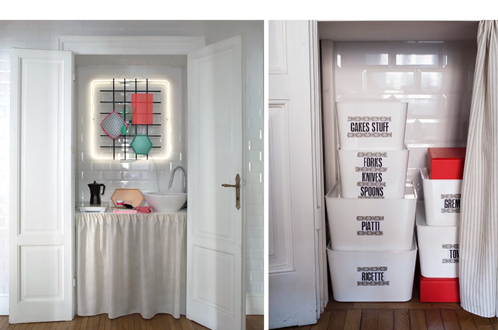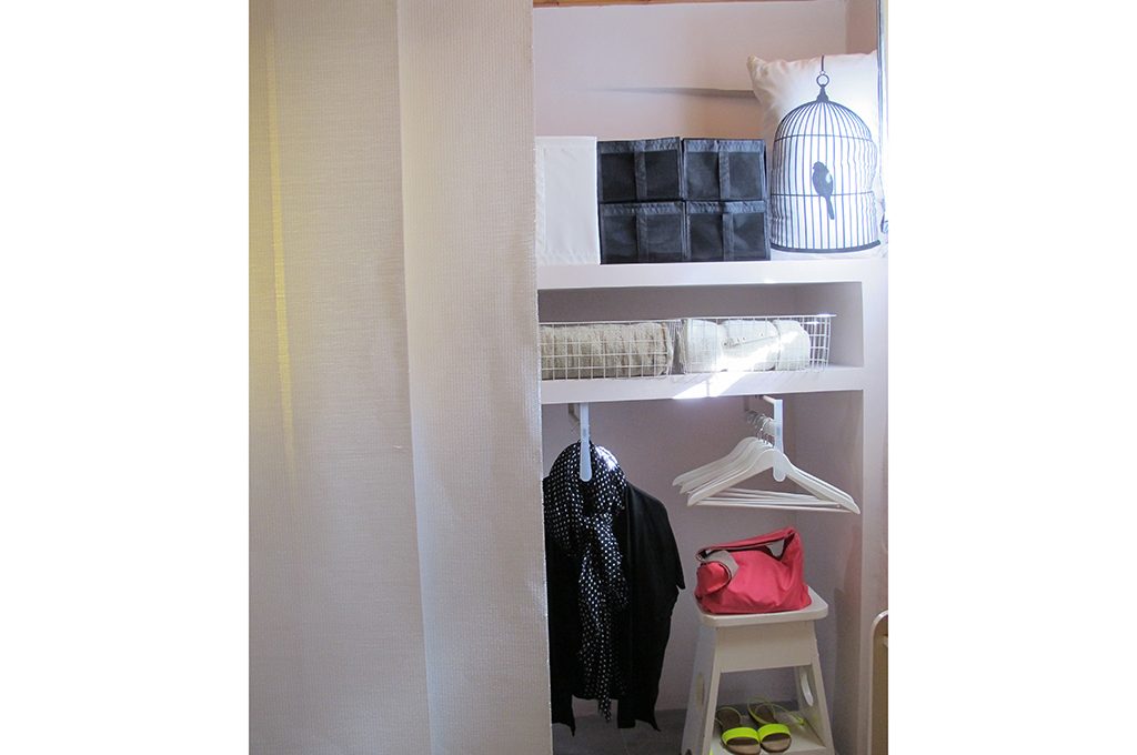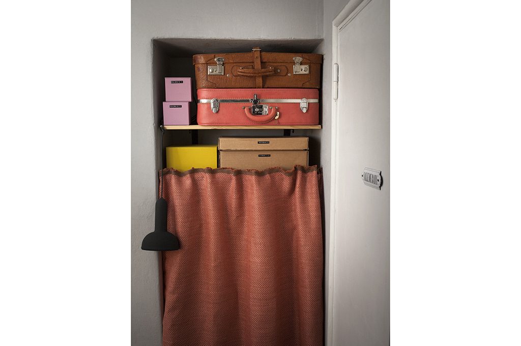 Ripostiglio 'vedo-non vedo'. Qui la tenda non copre tutto per una scelta estetica: le valigie colorate sono così belle che vale la pena di lasciarle a vista!
