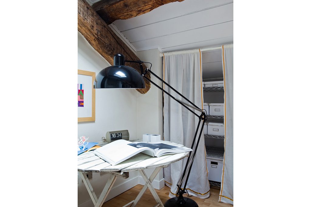 Nicchia+tenda = spazio da riempire a volontà! In questo caso è stato creato un piccolo archivio nell'angolo-studio della mansarda