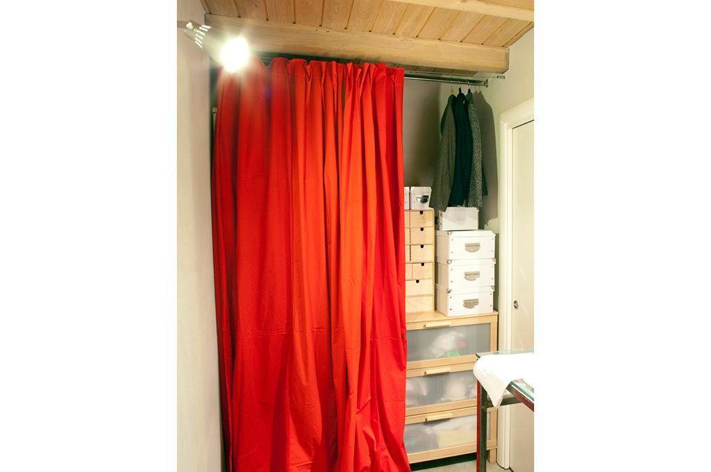 Basta una nicchia da coprire con una tenda per avere una mini cabina armadio: giacche e camicie possono stare appese anche una davanti all'altra. Basta un metro di altezza