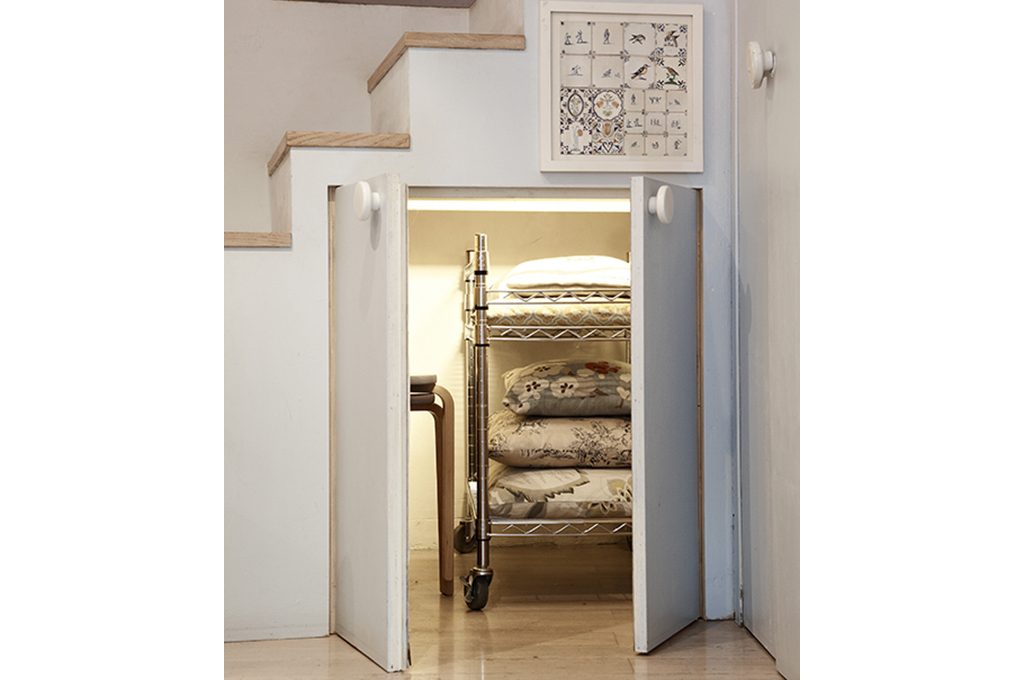 I vani sottoscala sono perfetti per ricavare un angolo studio, visto che le altezze sono sufficientemente ampie da accogliere una persona seduta a una scrivania. Allinea piano di lavoro e mensole ai gradini della scala per un effetto ‘ordinato’.