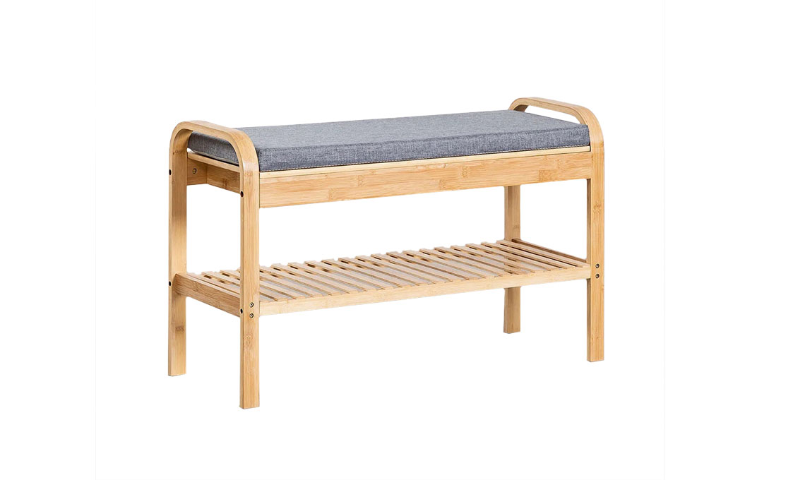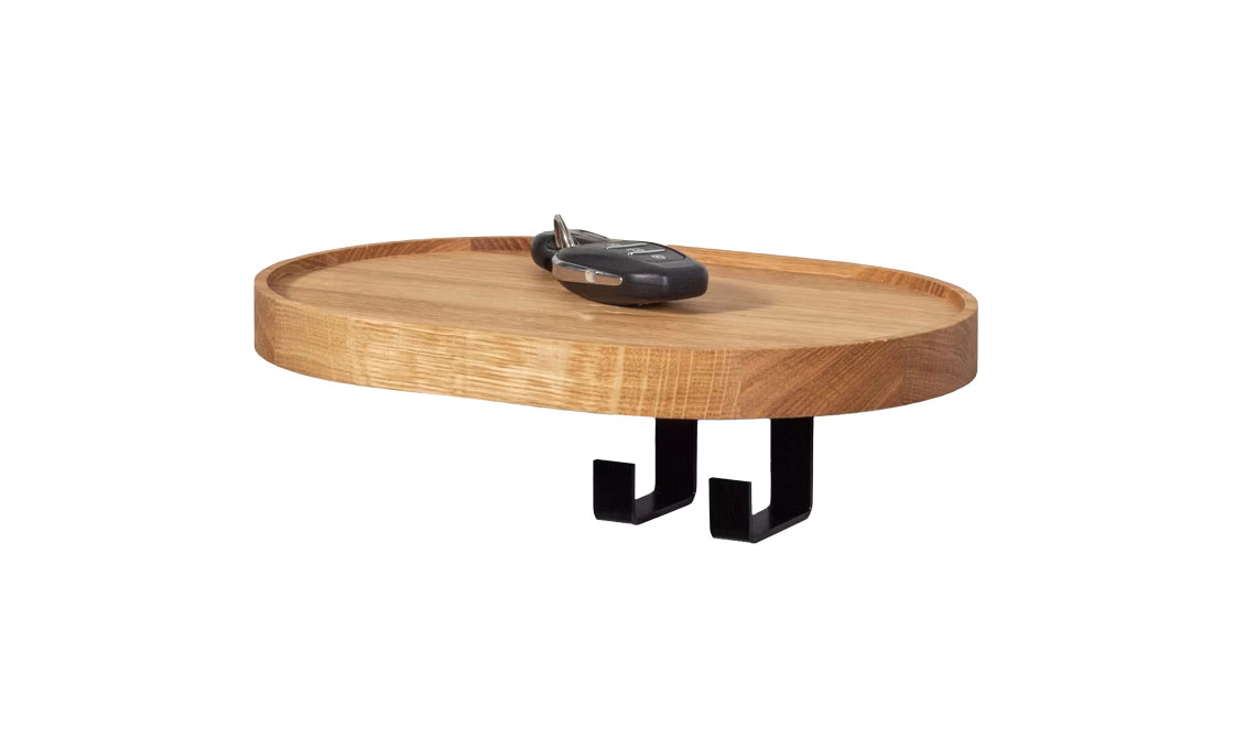 Attaccapanni da terra Angelo, con specchio rotondo e mensole di appoggio in legno [Kave Home, cm 76x191h]