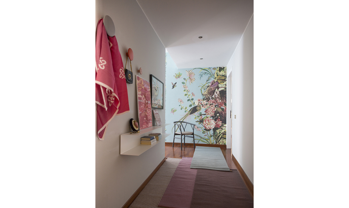 Punto focale. Colore e carta da parati creano un punto focale che rende più interessante il passaggio: perfette sul lato corto del corridoio.