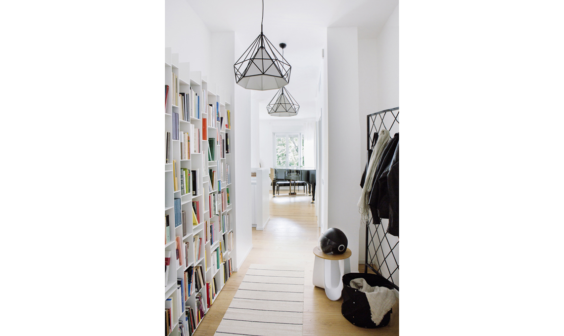 Luci studiate. Nel corridoio lungo e stretto servono almeno due lampade a sospensione: oltre a illuminare, aggiungono una dimensione scultorea necessaria per dare senso allo spazio. I faretti invece creano un’atmosfera fredda e poco accogliente, a meno che si riesca a mixarli con un paio di applique a parete.
