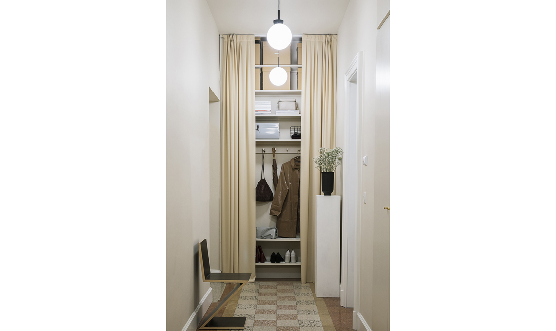 Basti pensare che nel corridoio più stretto, quello largo circa un metro, è possibile inserire una libreria profonda cm 18-20 (perfetta per i libri tascabili), o un appendiabiti con mensole.