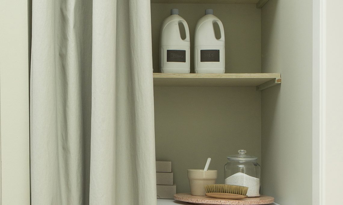 4 Dipingi i ripiani come il muro e appendi ordinatamente scope e spazzoloni come oggetti decorativi