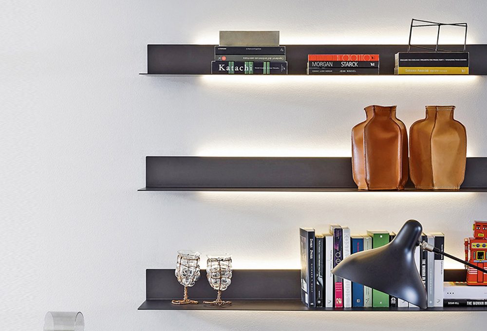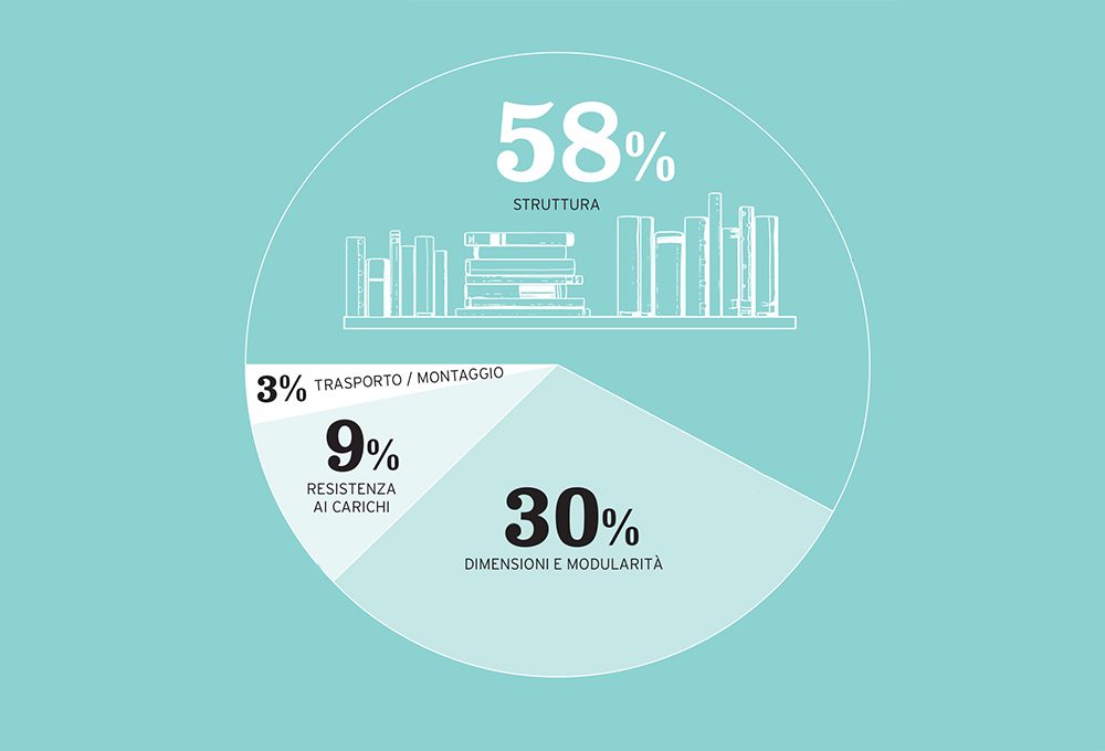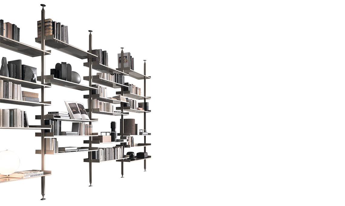 Superleggera: i montanti a baionetta si fissano stabilmente a terra e a soffitto e, grazie a scanalature verticali e ad appositi ganci, fissi i ripiani all’altezza che vuoi.