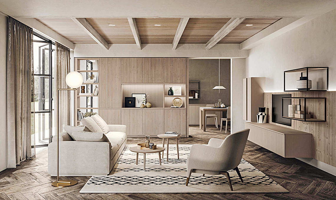 a vasistas o a ribalta in Olmo Jaipur e in laccato opaco Visone. Puoi scegliere tu quali vani chiudere. Di [Scavolini].