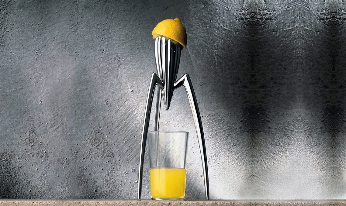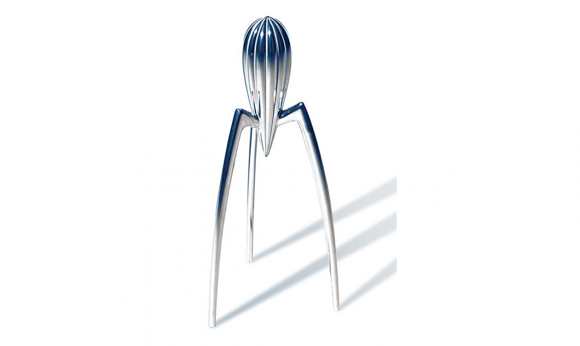 Juicy Salif è lo spremiagrumi firmato da Philippe Starck, uno degli oggetti più iconici e controversi degli Anni Novanta. È esposto nelle collezioni permanenti del MoMa di New York e del Centre Georges Pompidou di Parigi.