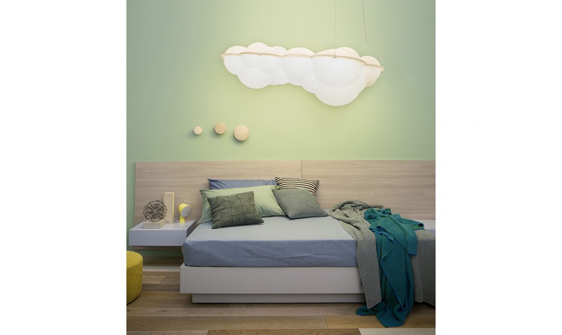 Letto contenitore e lampada a nuvola, ovvero: praticità e fantasia.