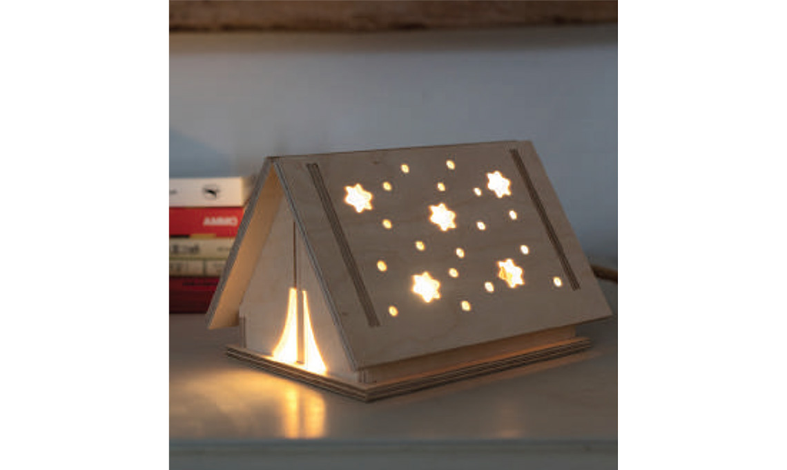 Wooden Playhouse è la casetta per bambini in multistrato di betulla naturale pieghevole dal design scandinavo e minimal [Stadthus, €379,19].