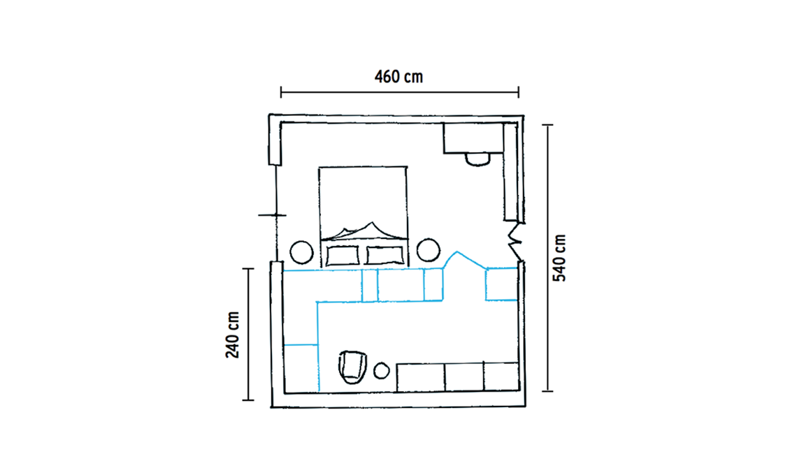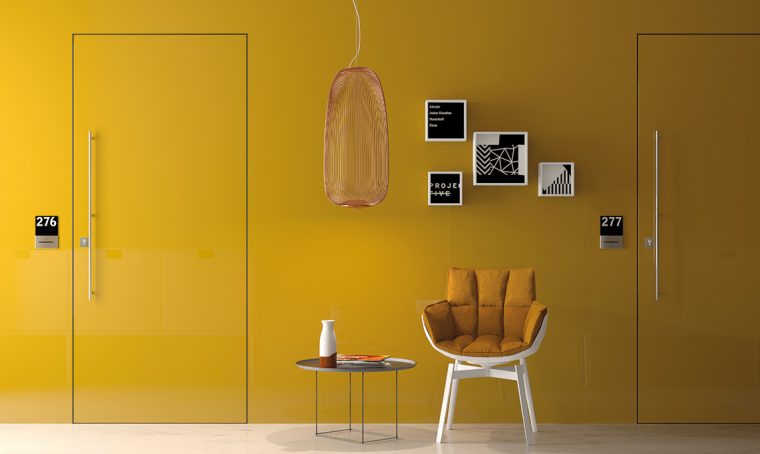 Che la stanza sia grande o di dimensioni standard, puoi dividerla in 2 senza lavori in muratura ma con un sistema di contenitori autoportanti, anche bifacciali, che possono includere la porta. Un esempio? I sistemi Freedhome® e ArchitypeTM che, abbinati, danno vita a una vera stanza nella stanza [Caccaro].