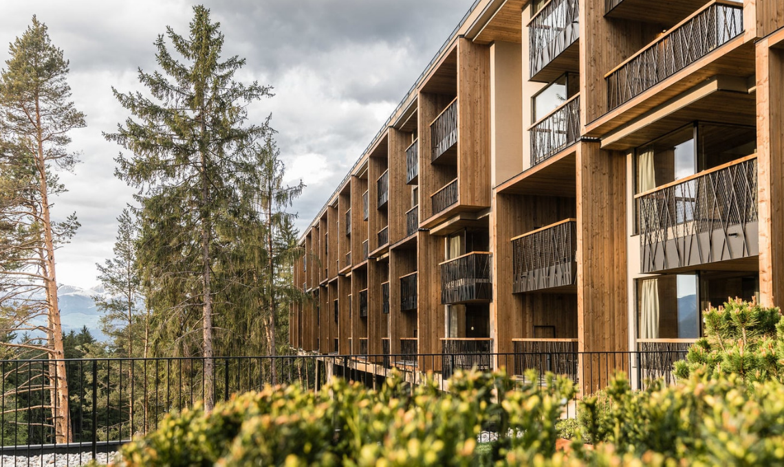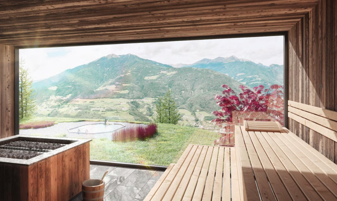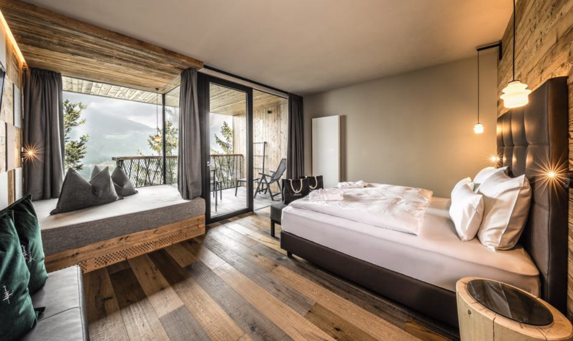 Le stanze, 104 in totale, sono invece concepite come un nido, dove accogliere gli ospiti durante il loro soggiorno. Tutte sono dotate di view corner, un angolo dedicato ad ammirare lo scenario che regala la vista sulla Valle Isarco, con ampia parete in vetro e un materasso con tanti cuscini. Due sono infine le Treetop di 100 mq dove sembra di essere letteralmente sospesi sulla cima di un albero. Una meraviglia!