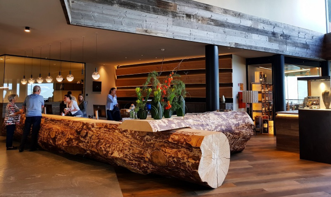 Entrando nella hall di questo speciale hotel verrai accolto da un grande bancone reception ricavato da un albero di 200 anni proveniente da Maranza; ed ecco che alzando gli occhi, dal soffitto sono sospesi 48 tronchi, alcuni dei quali trasformati in originali lampadari: insomma, gli alberi al My Arbor sono davvero i protagonisti.