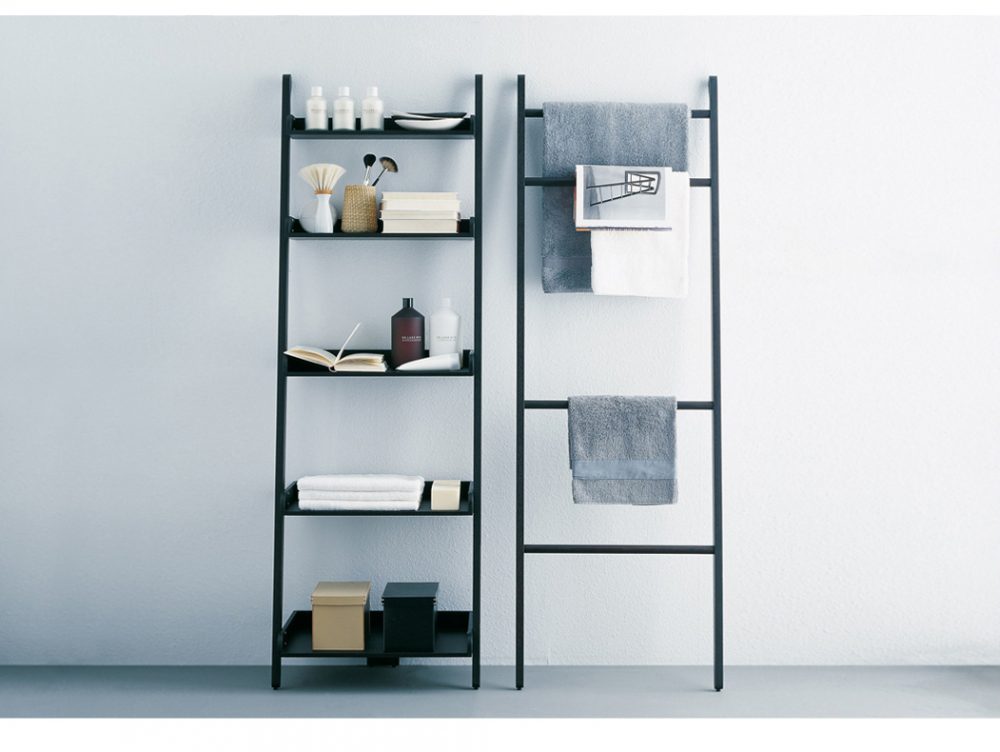 Da porta asciugamani si trasforma anche in portariviste e servomuto per gli abiti in camera,la scala di bambù Java [Leroy Merlin €19,50].