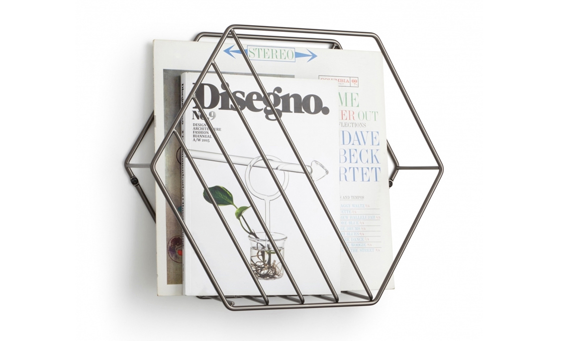 Giornali in ordine e a portata di mano con il contenitore da parete [Black by Design, cm 33x7,6x33h € 48].