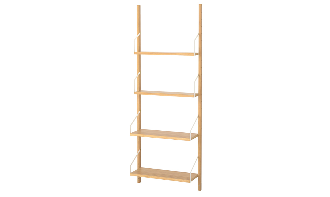 Inclinazione e misure ridotte al minimo nello scaffale Libri [Swedese, cm 38x30x227h €900].