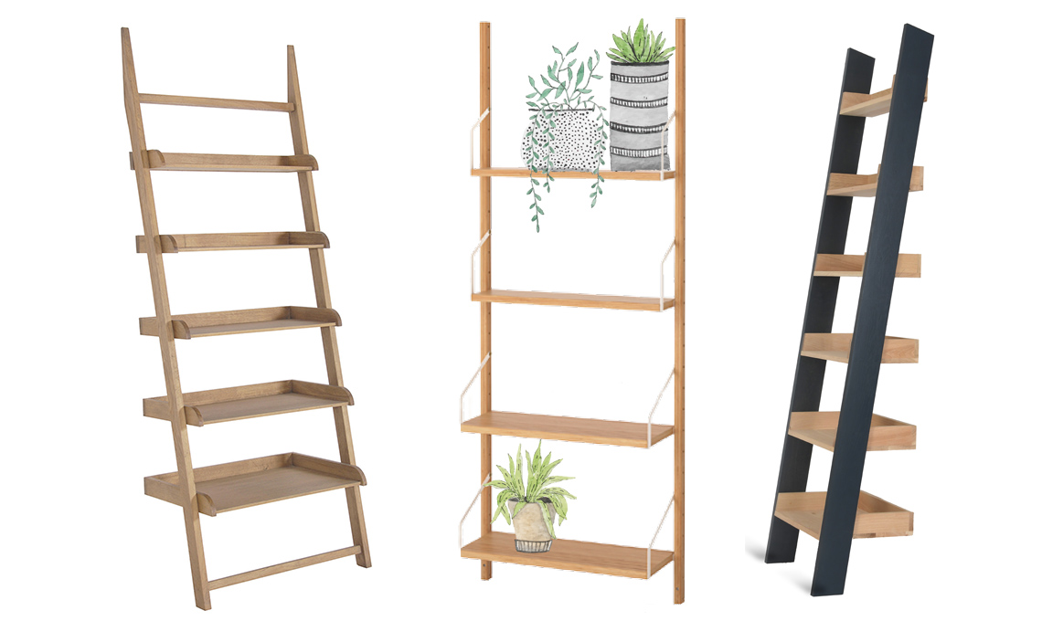 Mensole profonde nella libreria a scaletta Oslo, ideale anche come portaoggetti in cucina [Sweetpea & Willow, cm 81x48x214h € 460].