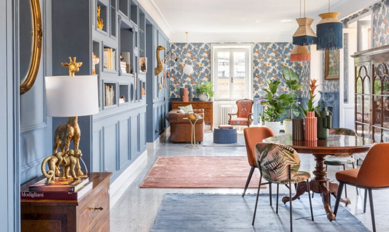 Le pareti del soggiorno offrono un’ampia superficie sulla quale giocare e ricreare un giardino d’inverno. Il mio consiglio è quello di puntare sulla carta da parati in stile floreale. Ne esistono di diverse fogge e soggetti, alcune caratterizzate da grandi foglie nei toni del verde e altre caratterizzate da colori più accesi, vivi e contrastanti. Potete decidere se usare la carta da parati su tutta la parete o solo nella porzione inferiore, tinteggiando di conseguenza la parete alta con un colore abbinato. In entrambe le soluzioni il risultato finale sarà sempre di grande impatto visivo.