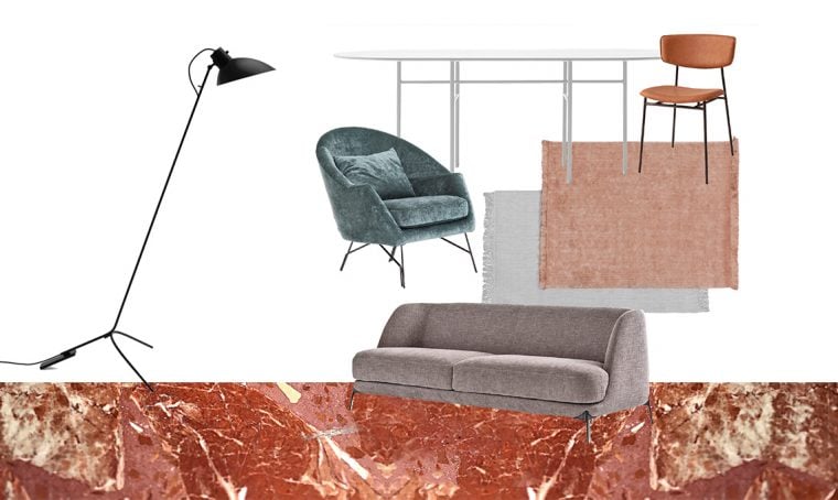 Il tocco terracotta è una delle tonalità vincenti per lo stile Anni ’50 scandito da dettagli black e legno naturale. Tripli vetri per un migliore isolamento acustico e termico per la finestra complanare scorrevole in pvc, anche con maniglia nella seconda anta, per aprirsi a battente [Fossati Serramenti]. Lampada in metallo e faggio, Spok di Ligne Roset. Trofeo orso, da montare di ADM. Televisore Smart TV Oled 805, da 55’’, con illuminazione Ambilight su tre lati, sistema Android 9, intelligenza Artificiale e Dolby VisionTM [Philips]. Mobile tv a due ante Twist di Maisons du Monde.