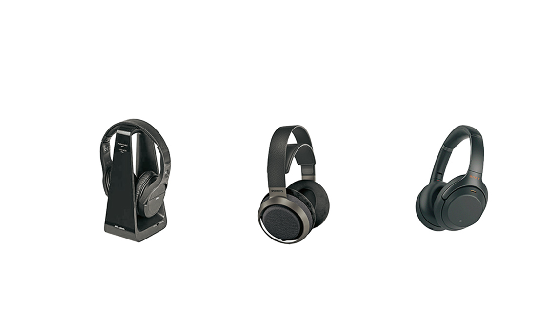 con ricarica per la cuffia wireless 100% digitale, compatibile con tutte le TV [Meliconi €129,99]; cuffie Fidelio, cablate X3 aperte sul retro, leggere, dall’audio cristallino [Philips € 349,99]; cuffie wireless dalla tecnologia di ascolto di alta qualità [Sony €380].