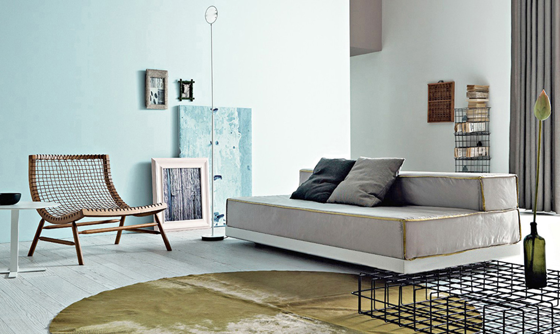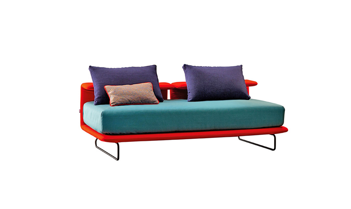 Lo schienale si ribalta per trasformare Bed & Breakfast in un letto a una piazza e mezza. Materasso in poliuretano espanso [Saba Italia].