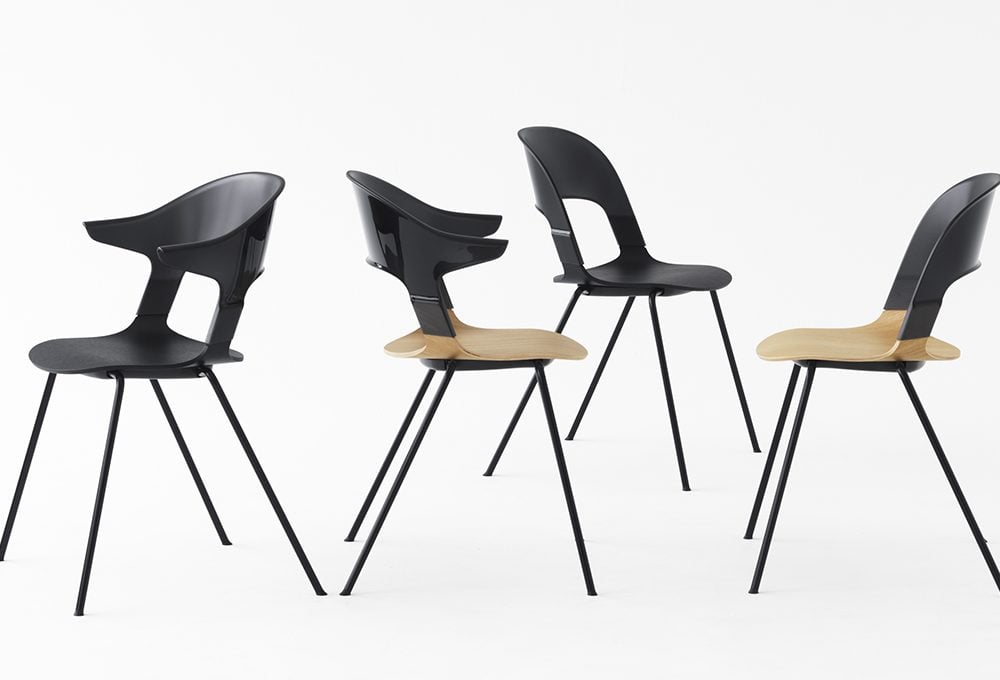 Il colore più iconico, quello che non passa mai di moda e sta bene con tutto, incontra diversi materiali e produce otto sedute ‘grafiche’.