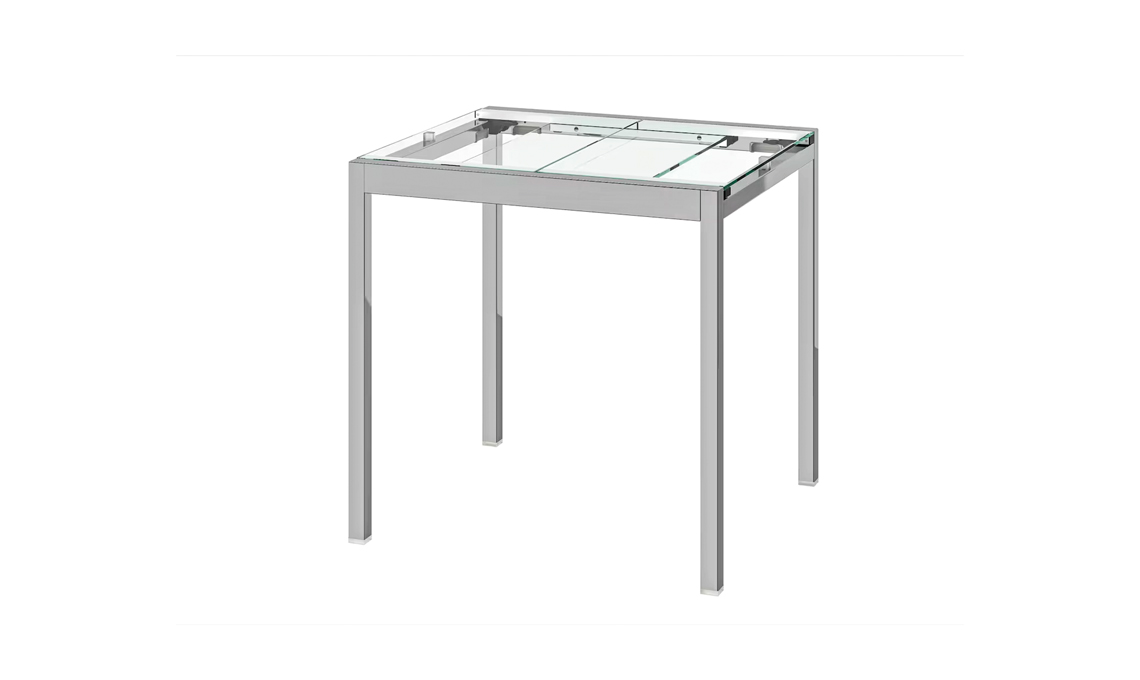 Sicuro e 'light'. Dotato di allunga da 40 cm, Glivarp ha base in metallo e top in vetro temprato: resiste alle macchie ed è facile da pulire [Ikea, cm 75-115x70x74h]